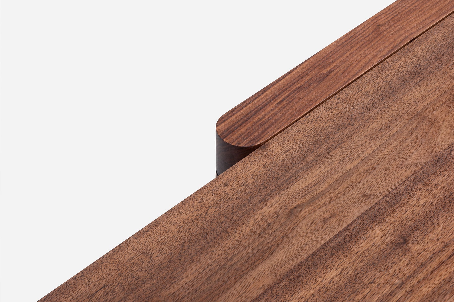 Available in black walnut, white oak, or ash in a range of finishes. Solid wood frame and engineered solid wood tabletop. See menus below for further material information.