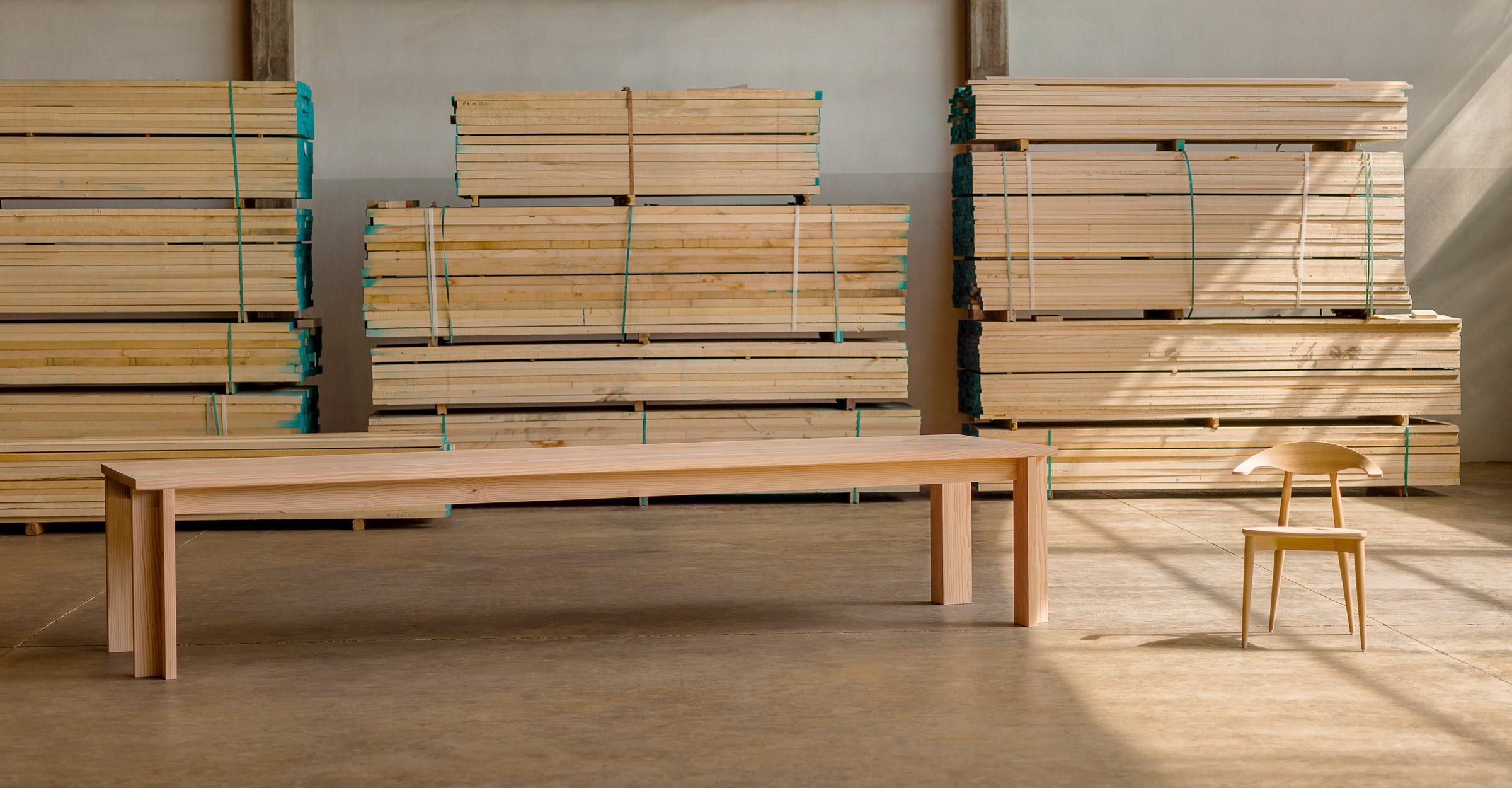 Manuel Aires Mateus specified Douglas Fir for his furniture collection to take advantage of the spectacular proportions and consistent quality this timber offers. The use of this blond wood adds an extra dimension and intensity to the materiality of the collection. Finished naturally with a white-pigmented Danish oil and wax, the timber maintains its natural pale colour and sensuous tactility.