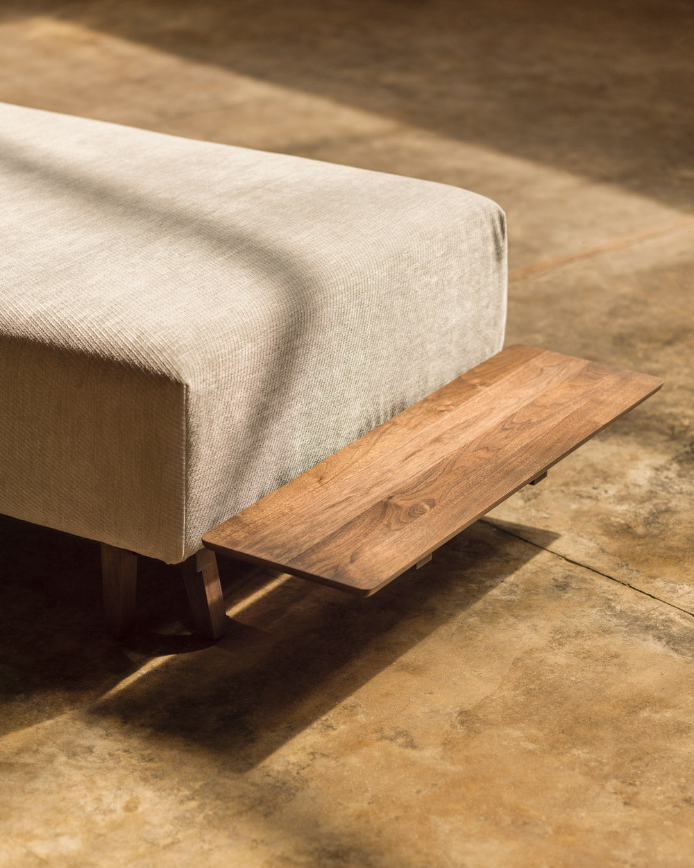 Sofa Eight is a continuation of Neri&Hu’s exploration of an expressive tectonic language. The main supporting element of the sofa is a traditional wood joinery assemblage of stacking members in the X, Y, and Z-axes, pinned together to form a structural base.